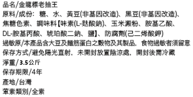 金龍標老抽王3.5K /